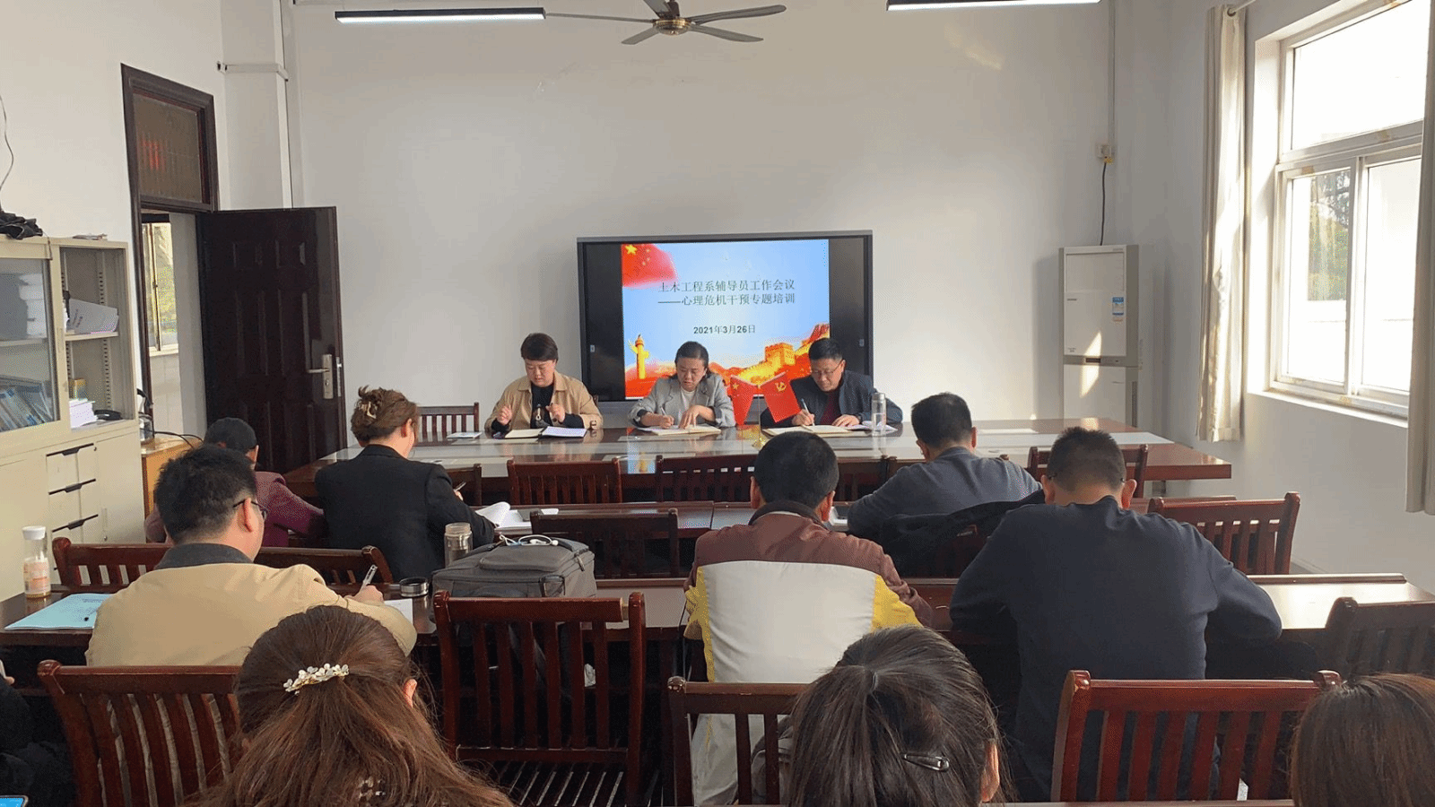 2021年3月26日,在土木系會議室召開了19、20級輔導員工作會議,特邀院心理健康教育中心主任魯曉云老師對大家進行心理危機干預專題培訓。系主任王常才、系黨總支副書記朱蓉參加會議。