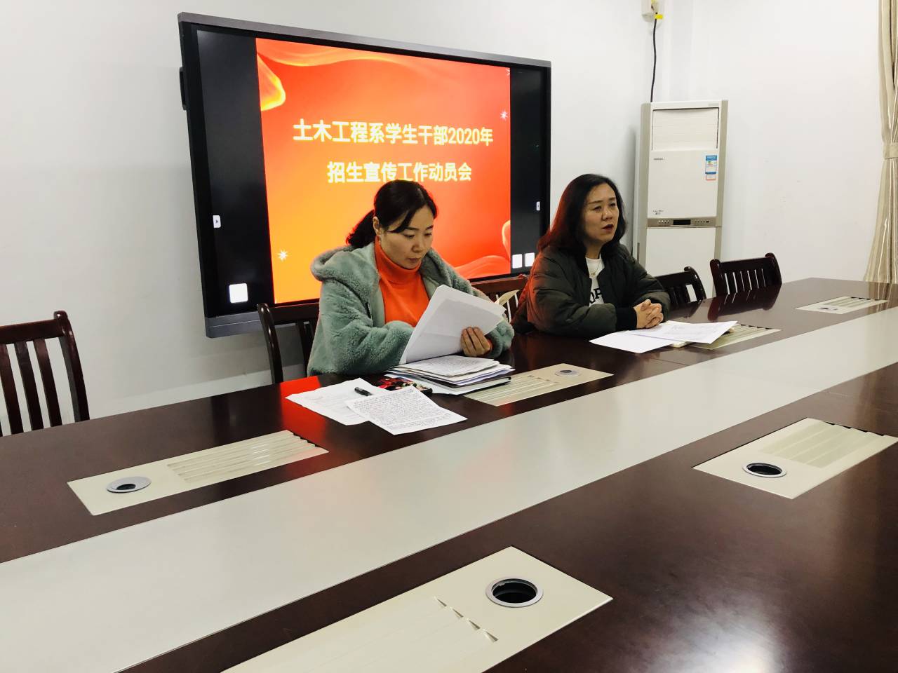 2020年元月6日晚7點,土木系2019-2020學年第一學期期末班長總結會議暨學生干部2020年招生宣傳工作動員會在系會議室召開。系黨總支副書記朱蓉老師參加會議,會議由系主任輔導員趙婧老師主持,18、19級各班班長參加會議。