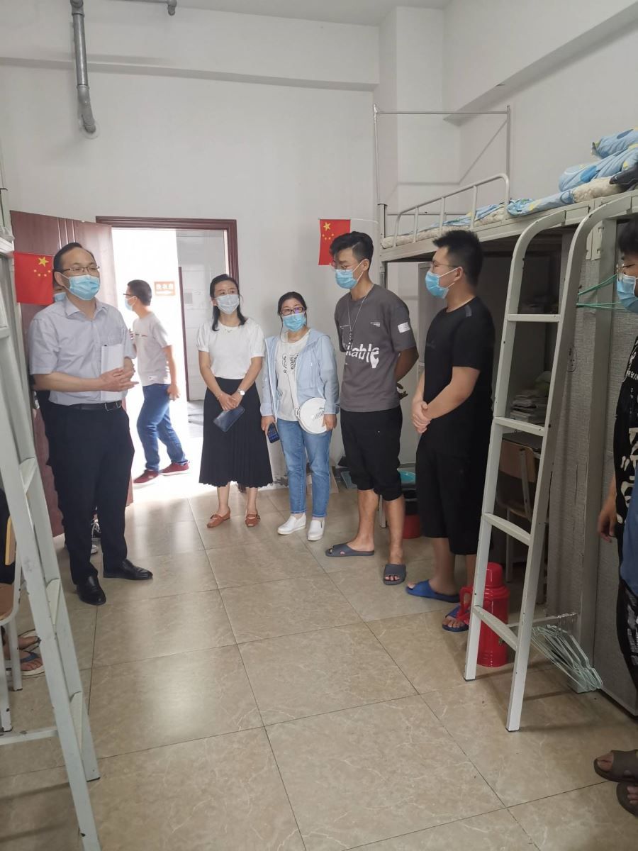 下午15點30分,由鄒書記帶隊,朱書記及返校12個班級的輔導員一同前往宿舍看望返校學生,了解學生的返校生活思想情況。