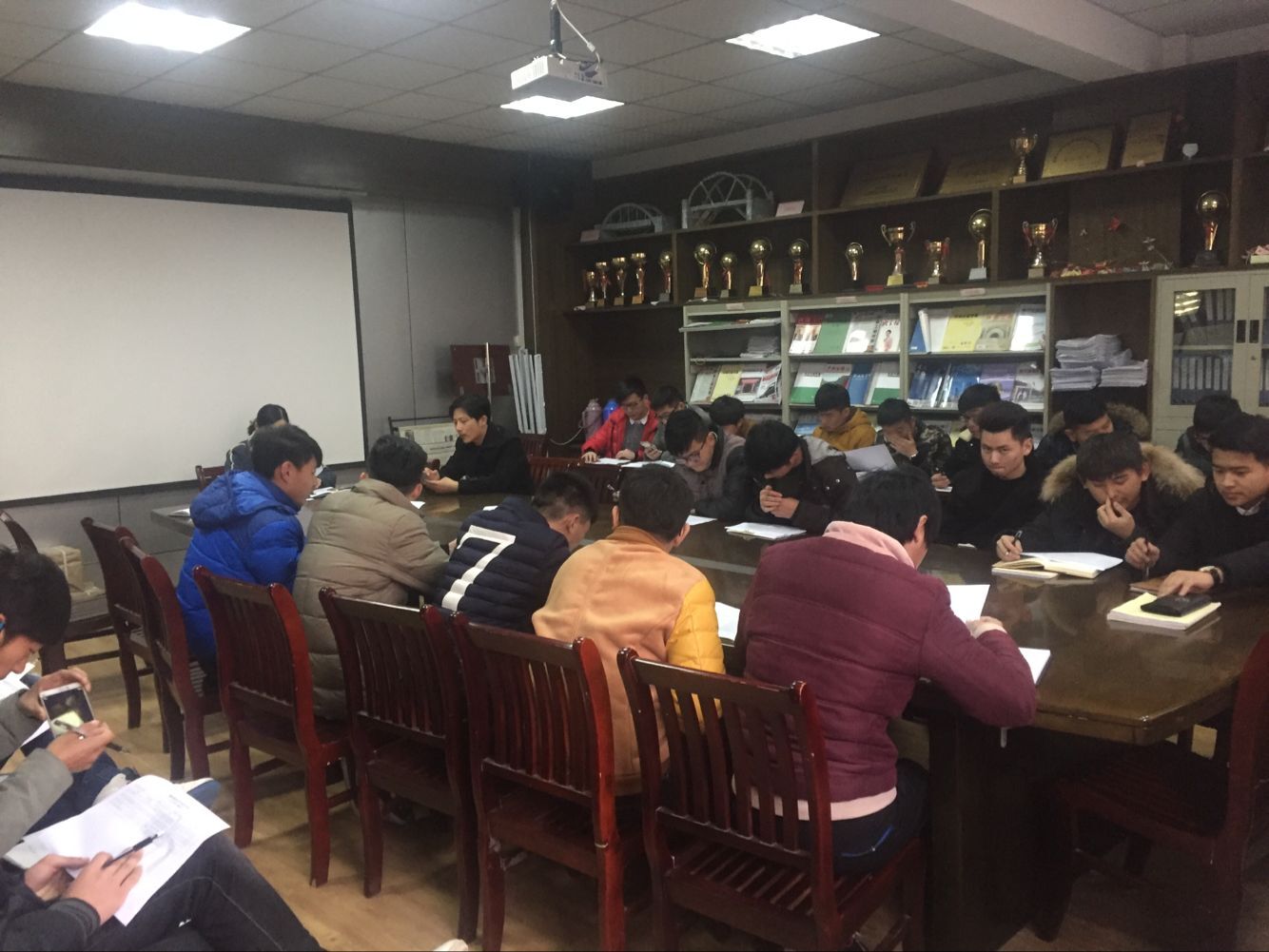 2016年12月27日下午四點,土木工程系期末班長會議在系會議室召開。系主任輔導員趙婧老師主持會議,系教學秘書郭強老師、大一、大二各班班長及系團總支學生會相關部門學生干部參加了會議。