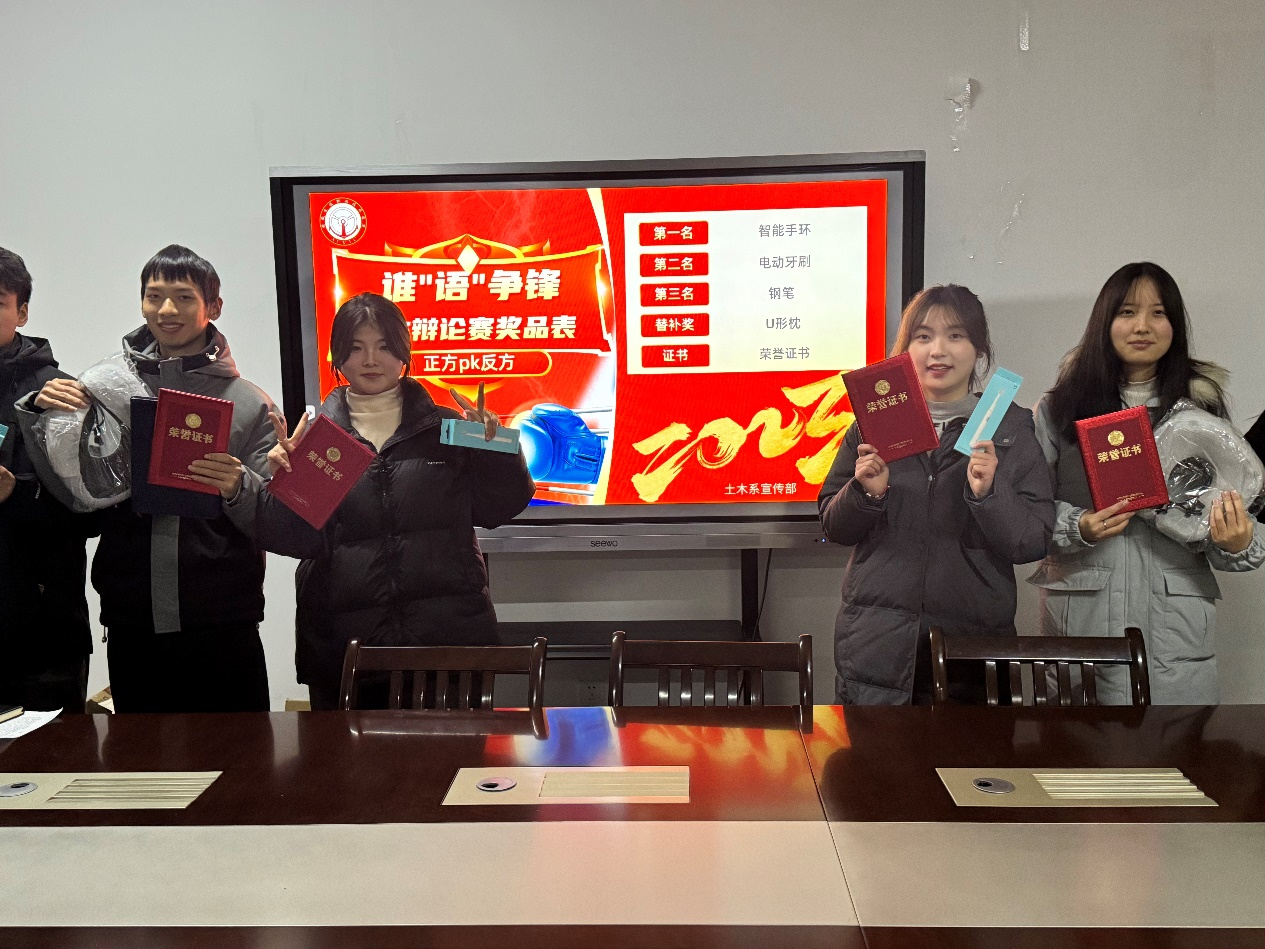為培養我系23級新生的語言思辨能力和團隊協作能力,增強思想政治教育,促進同學們全面發展,豐富課余生活。由土木工程系團總支宣傳部舉辦的以“新青年如何在信息時代生活更從容”為主題的新生杯辯論賽在2024年12月18日晚上落下帷幕。此次辯論賽歷經一月之余,辯論會現場上各班辯手們周密準備旁征博引,唇槍舌戰精彩非凡,評委由歷屆學院辯論賽獲獎選手和系學生會主席擔任。