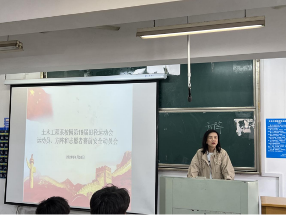 4月24日下午,土木工程系在教學樓東階301教室召開了學院第十九屆田徑運動會賽前安全動員會。土木工程系黨總支副書記朱蓉,主任輔導員蔣鳳嬌,系全體運動員和志愿者參加了會議。動員會由系團總支干事武慶媛主持。
