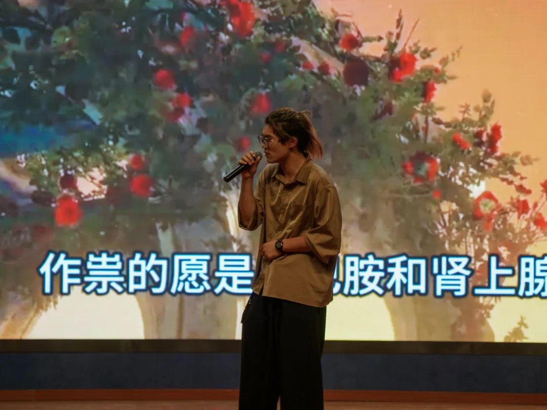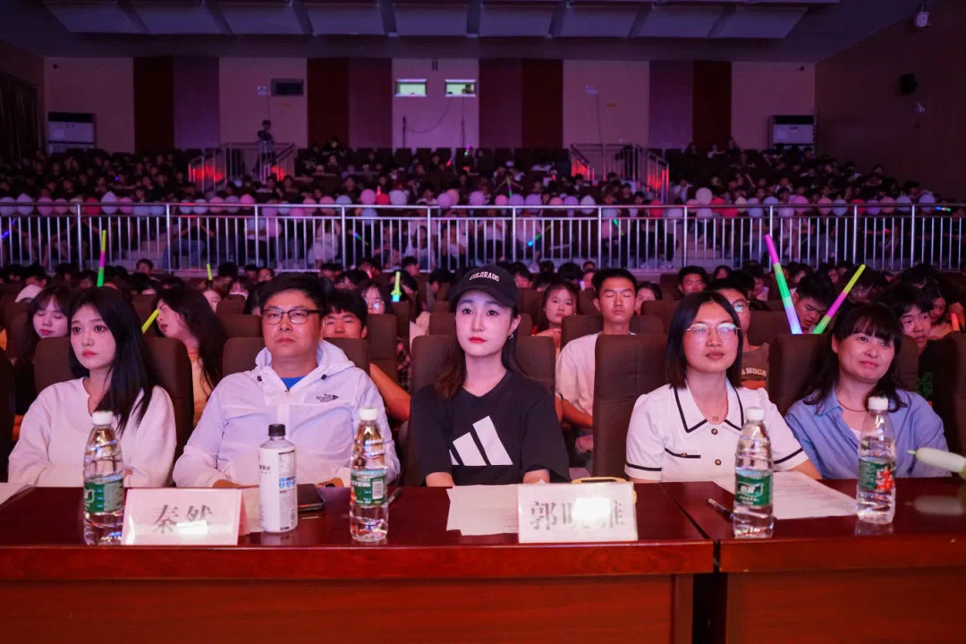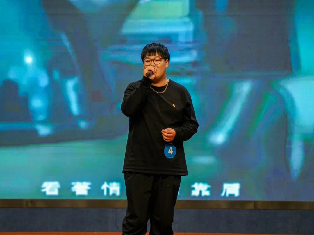 本次大賽歷經(jīng)初賽、復(fù)賽,共10名優(yōu)秀選手登上決賽舞臺(tái),大賽特別邀請(qǐng)了緘默音樂創(chuàng)始人秦然,潤(rùn)爾文化首席聲樂指導(dǎo)代安琪,中央音樂學(xué)院聲樂展演優(yōu)秀指導(dǎo)老師、鹿蜀音樂郭曉雅三位專業(yè)音樂從業(yè)者作為評(píng)委老師。晚上七點(diǎn),伴著激昂熱烈的架子鼓演奏,大賽在男團(tuán)舞蹈《風(fēng)吹一夏》、雙人女舞《女帝》中正式開始,1號(hào)張藝耀同學(xué)一首經(jīng)典勵(lì)志歌曲《光輝歲月》驚艷開嗓,10名選手依次登臺(tái),或激情洋溢,或催人奮進(jìn),或宛轉(zhuǎn)悠揚(yáng),或胸懷家國(guó),以精湛的演唱技巧完美演繹了一首首有關(guān)青春、奮斗、圓夢(mèng)等主題的曲目。