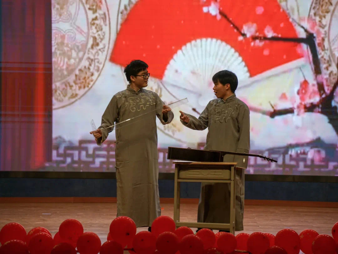 在串場(chǎng)表演中,系學(xué)生會(huì)文藝部表演了架子鼓雙人合唱《逆戰(zhàn)》,躁動(dòng)的鼓點(diǎn)和嘶吼般的高音如狂風(fēng)驟雨,讓現(xiàn)場(chǎng)觀眾感受到屬于新時(shí)代土木青年的意氣風(fēng)發(fā)。劉鑫炎、何華良兩位同學(xué)的相聲表演《歡樂音樂人》、周鳴涵同學(xué)的中國(guó)風(fēng)江湖派說唱《滄海一聲笑》、男團(tuán)舞蹈《青蘋果樂園》、女團(tuán)舞蹈《愛情公寓》等精彩節(jié)目均贏得了滿堂喝彩。