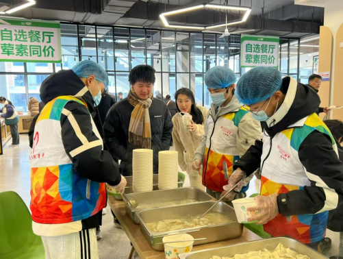 而大部分水餃在中午的時(shí)候免費(fèi)發(fā)放給交院的師生們,志愿者們?cè)谥付▍^(qū)域熱情地招呼著每一位前來(lái)的同學(xué)。領(lǐng)取到水餃的同學(xué),臉上洋溢著驚喜與感動(dòng)。他們或圍坐在一起分享這份意外的溫暖,或獨(dú)自品味水餃帶來(lái)的家一般的慰藉,歡聲笑語(yǔ)回蕩在食堂的每一個(gè)角落。