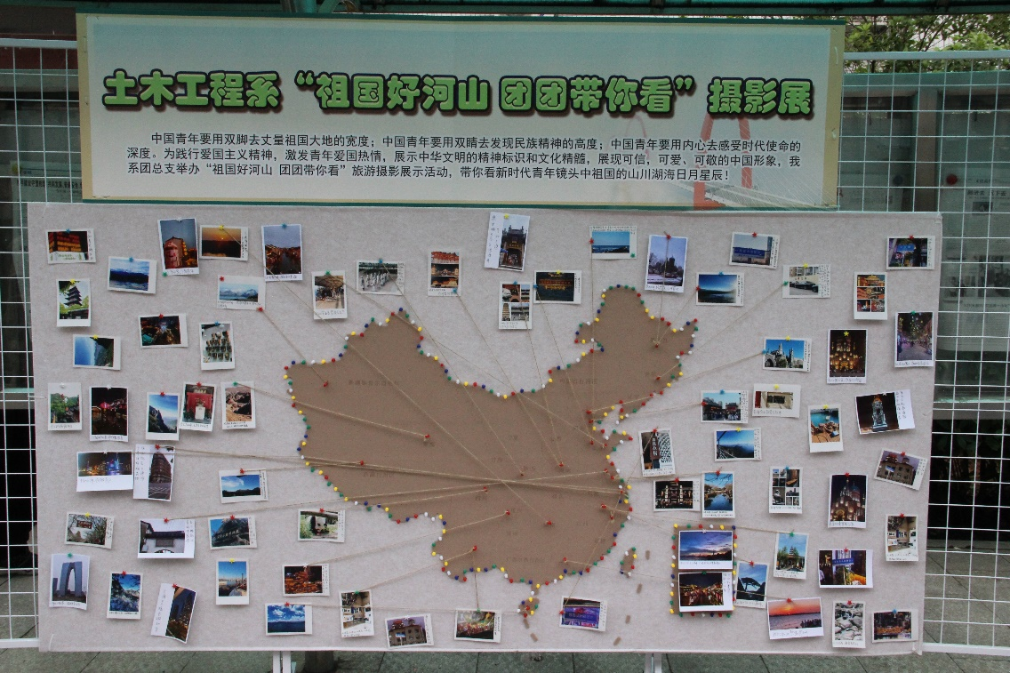 本次活動準備充分,同學們熱情高漲。于5月初開始將各位同學們游覽祖國各地拍下的照片上傳到自編小程序中進行全院投票,經過半個月的激烈投票,選出最能體現美好風景與風土人情的攝影作品,于5月24日在北區教學樓樓下以“祖國好河山,團團帶你看”為主題舉辦了攝影展活動。