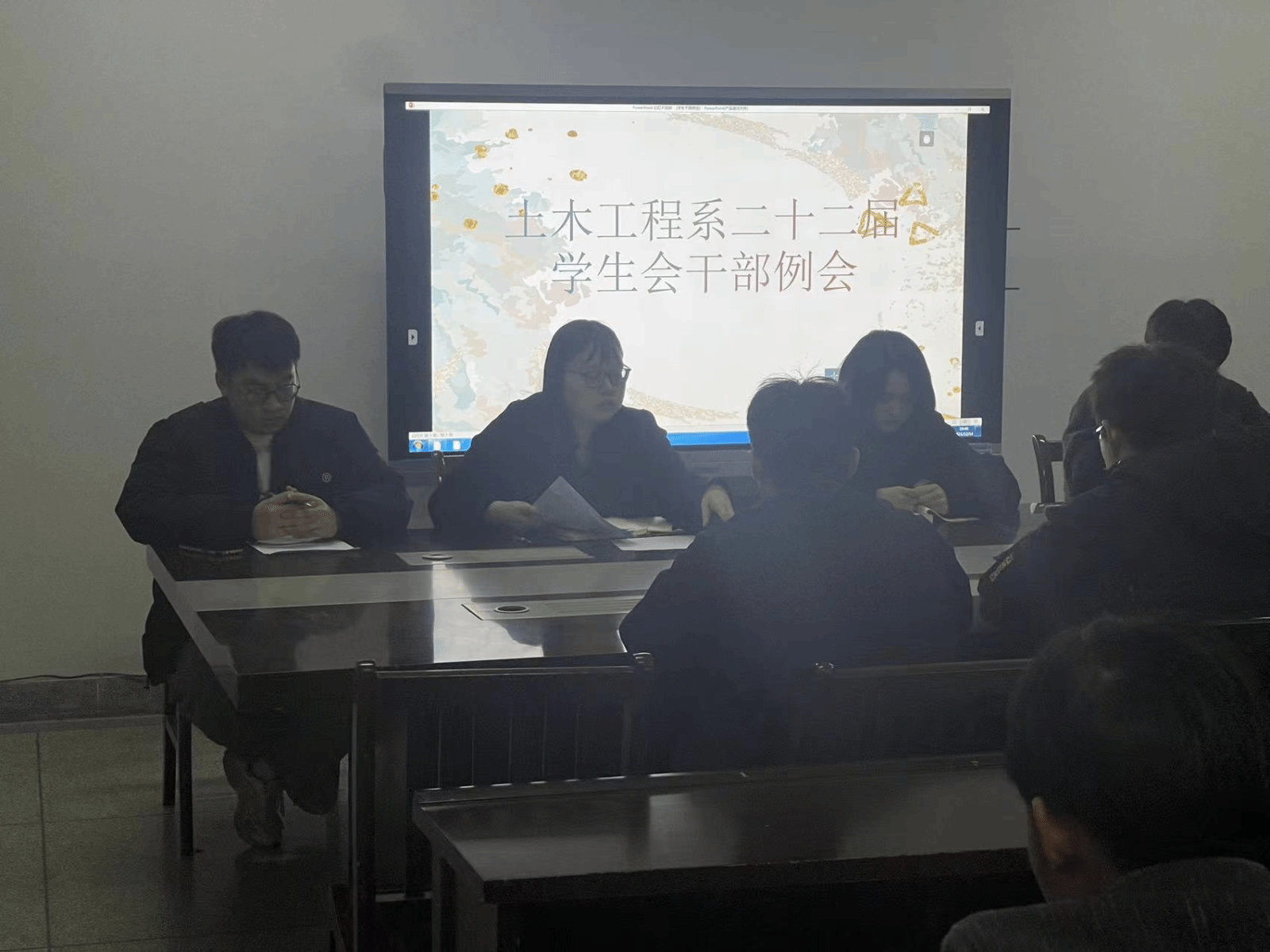 12月14日晚7:00,土木工程系在北區教學樓三樓會議室進行了第二十二屆團總支學生會干部例會。武慶媛老師及全體二十二屆學生會干部參與了本次會議。