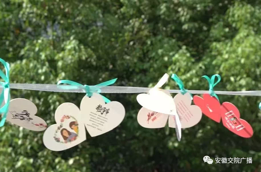 在這個崇高的節日里,為了體現同學們對老師誠摯的祝福感激之情,加深師生之間的情感,我們號召全系學生在卡片上寫下對老師的祝福,并將卡片系在彩色絲帶上。幾百個小卡片連成一片,每當秋風吹起,便滿載著同學們最真誠的祝福像蝴蝶一樣飛舞在教學樓的扶手上。