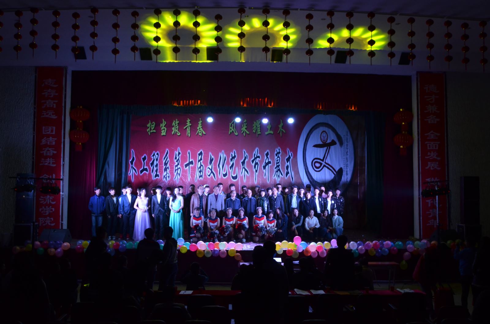 11月8日晚,“擔當筑青春,風采耀土木”,土木系第十屆土木文化節開幕式暨迎新晚會在南區大禮堂舉行。院黨委副書記、紀委書記陳明親臨開幕式現場,宣布文化節開幕,并用他的兩幅書法作品:“厚土承德 菁木求華”、“ 揚土木之風,追堅卓之志”,對土木系文化藝術節的舉辦表示祝賀。院學生處處長喻謹、院組織人事處副處長昌希燦、院學生處副處長、團委副書記呂忠國以及土木系王常才主任、土木系黨總支書記鄒建華、黨總支副書記陶權出席了當晚的開幕式暨迎新晚會。