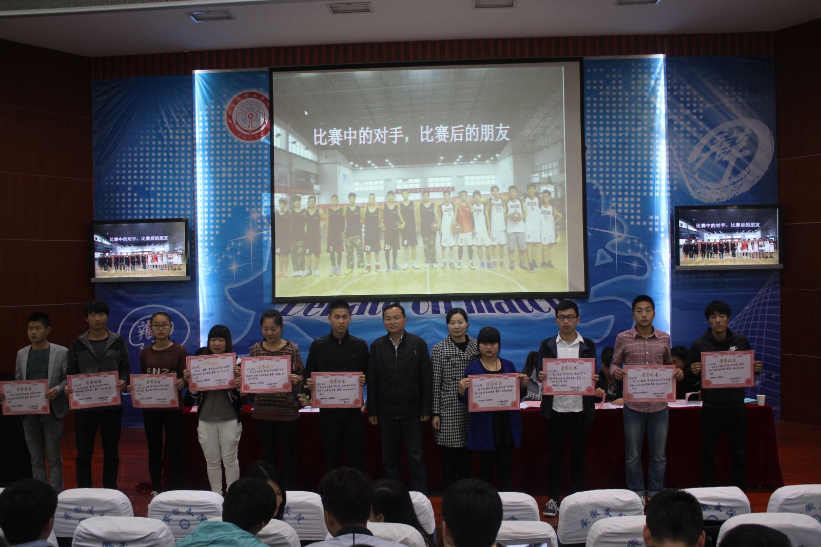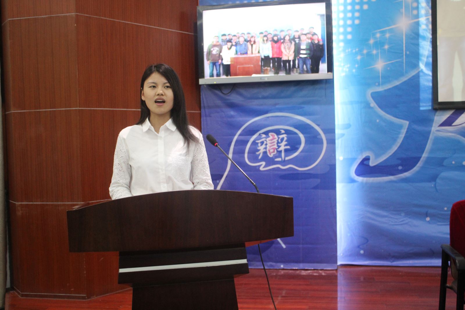 系主任輔導員趙婧宣讀第六屆土木文化之星的獲獎名單。獲得“部門文化之星”的5個部門、11個“班級文化之星”以及30位“個人文化之星”相繼上臺領獎并合唱留念。之后,三類“文化之星”代表也分別上臺發言。