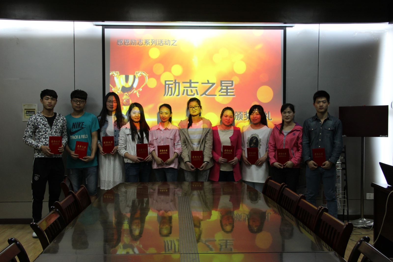 勵(lì)志與感恩是當(dāng)代大學(xué)生都應(yīng)該重視的問題,為激勵(lì)我系品行端正、意志堅(jiān)強(qiáng)的大學(xué)生自立自強(qiáng)、奮發(fā)成才,引導(dǎo)大學(xué)生樹立自信心,弘揚(yáng)克服困難、努力拼搏、積極向上的良好風(fēng)尚,土木系生活部特舉辦了勵(lì)志之星評(píng)選大賽。用打動(dòng)人、感染人的勵(lì)志事跡,教育學(xué)生,感動(dòng)學(xué)生,激勵(lì)學(xué)生,使廣大學(xué)生樹立遠(yuǎn)大理想,不斷激發(fā)實(shí)現(xiàn)自我價(jià)值的熱情。本屆土木系“感恩勵(lì)志系列活動(dòng)之勵(lì)志之星”活動(dòng)的頒獎(jiǎng)典禮在北教三樓土木系會(huì)議室落下帷幕。