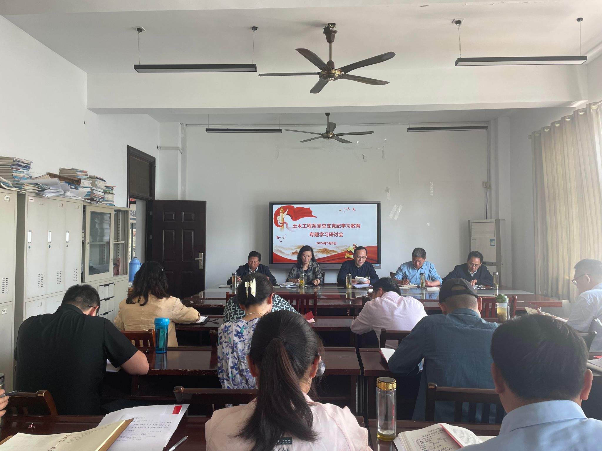 5月8日下午,土木工程系召開黨總支黨紀學習教育專題學習研討會,系領導班子、副科級以上干部、支部書記參加學習,院組織人事處、紀委相關人員列席會議。系黨總支書記鄒建華主持會議。
