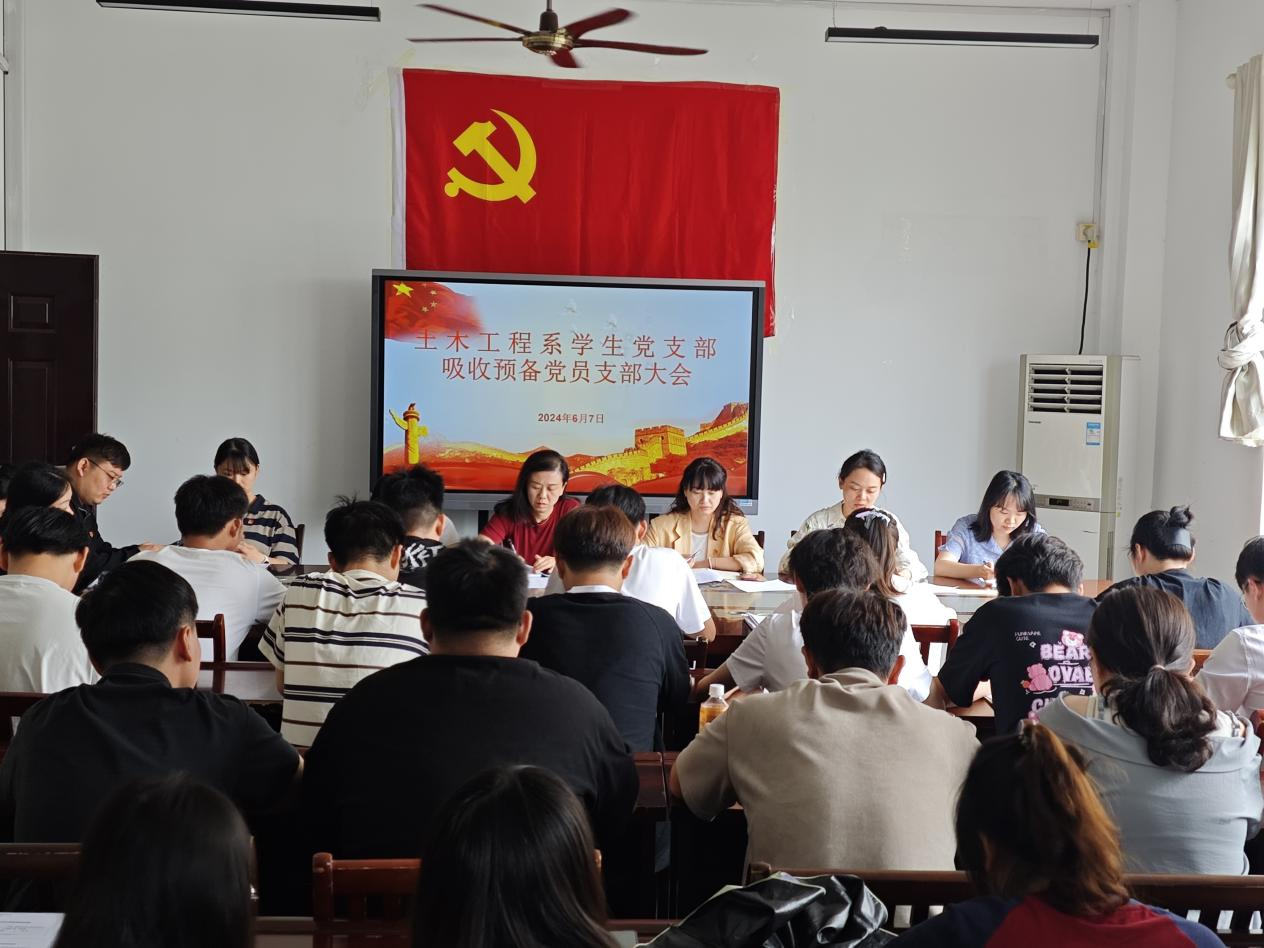 6月7日上午,土木工程系學生黨支部在系會議室召開吸收預備黨員支部大會。系黨總支副書記朱蓉、支部全體教師黨員及15名發展對象參加大會,會議由支部書記張靜主持。