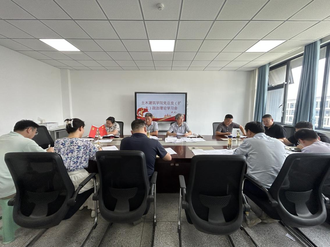 6月4日下午,土木建筑學院召開黨總支(擴大)政治理論學習會,領導班子成員、黨支部書記、副科級及以上干部參加學習,黨總支書記邵登泰主持會議。