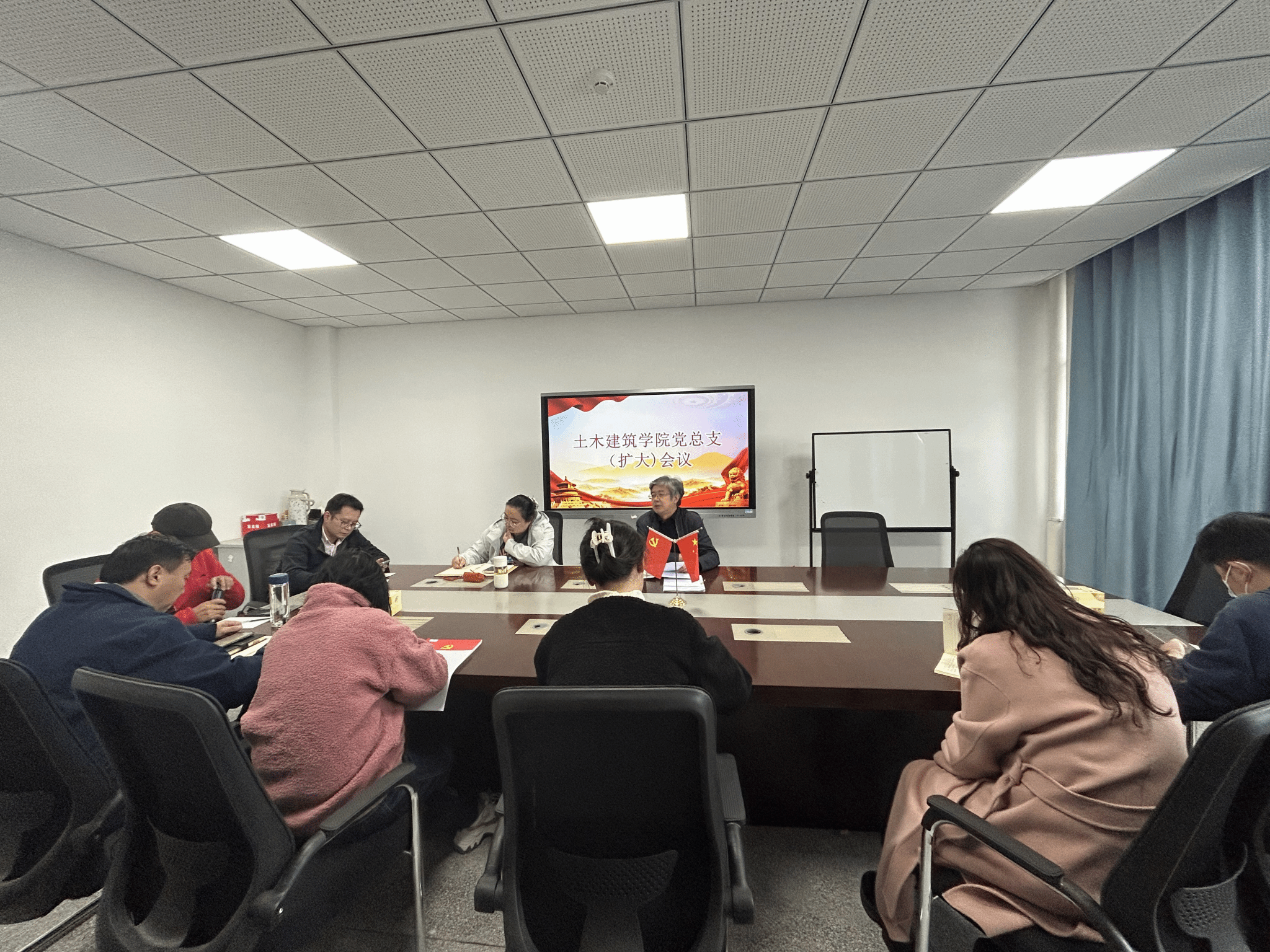 2025年10月17日14時,土木建筑學院在A411會議室召開黨總支(擴大)會議,各黨支部書記(負責人)、副科及以上干部參會,黨總支書記邵登泰主持會議。