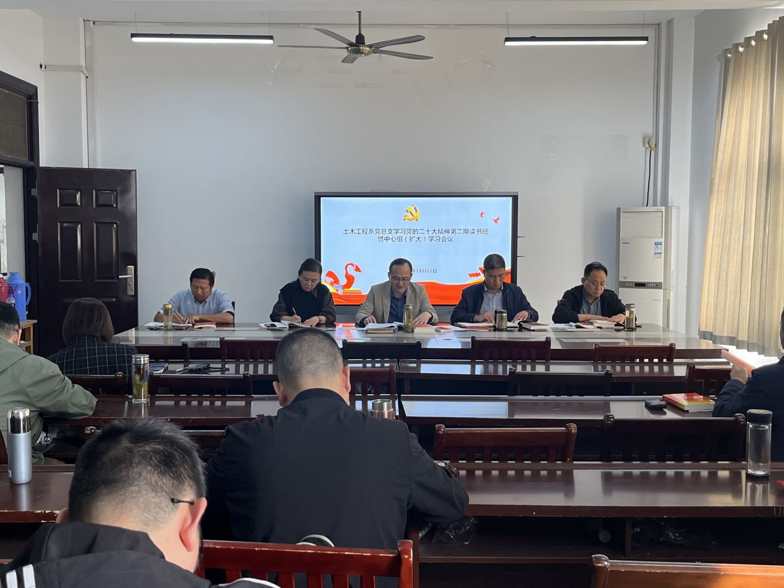 11月11日下午,土木工程系黨總支召開學習黨的二十大精神第一期讀書班暨中心組(擴大)學習會議(第二次),系領導班子、副科級以上干部和黨支部書記參會。