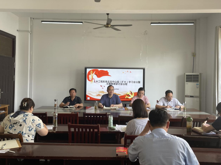 6月9日下午,土木工程系召開黨總支中心組(擴大)學習暨主題教育研討會議。系領導、副科級以上干部、黨支部書記參加學習交流。