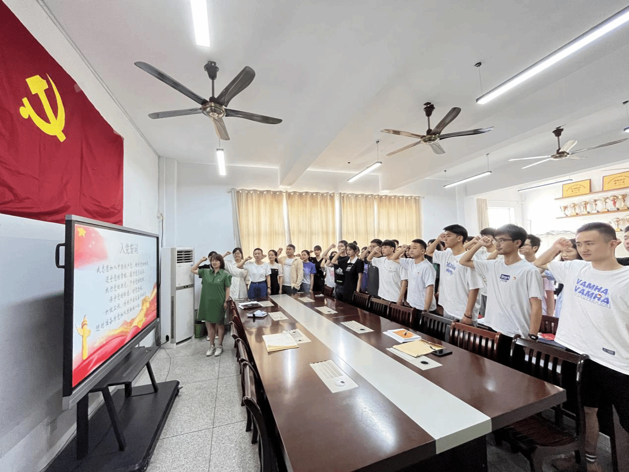學(xué)生黨支部書記張靜領(lǐng)誓,在她的帶領(lǐng)下,全體黨員面對黨旗進(jìn)行莊嚴(yán)宣誓。在鮮艷的黨旗前,各位黨員握拳示意,慷慨激昂地宣讀了入黨誓詞。宣誓后,參會的學(xué)生正式黨員為新發(fā)展的黨員佩戴黨員徽章。