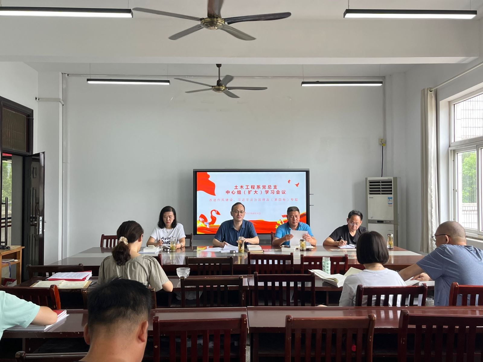 8月26日上午,土木工程系黨總支召開改進(jìn)作風(fēng)建設(shè)暨《習(xí)近平談治國理政》第四卷專題中心組(擴(kuò)大)學(xué)習(xí)會議。系領(lǐng)導(dǎo)、副科級以上干部、支部書記參加學(xué)習(xí)交流。