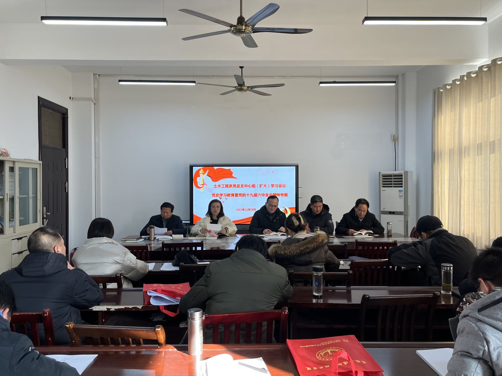 12月23日下午,土木工程系黨總支召開中心組(擴大)學習會議,專題學習黨的十九屆六中全會精神。系領導、副科級以上干部、各黨支部書記參加學習交流。