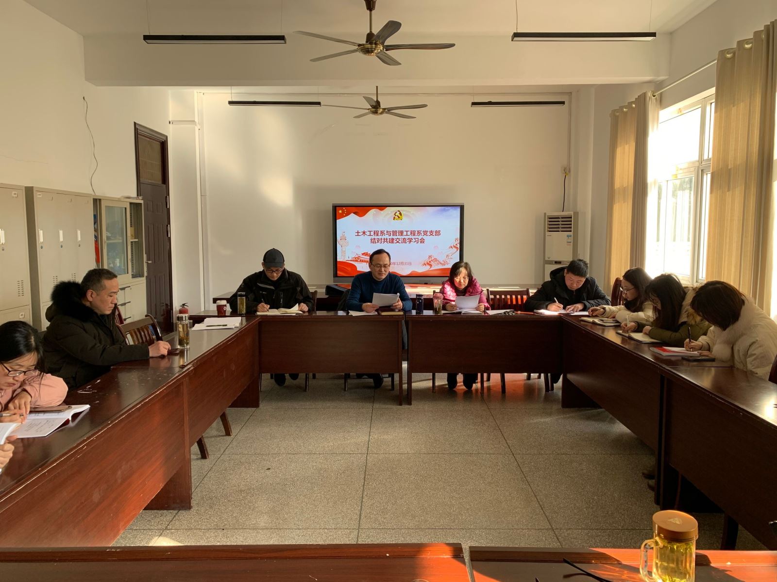 為了全面貫徹落實院黨委《關于進一步落實“三會一課”制度,開展結對共建工作的意見》精神,進一步推進整治基層黨支部“三會一課”落實不到位問題專項行動,根據學院安排,土木工程系與管理工程系黨支部之間開展結對共建活動。12月31日,土木工程系與管理工程系召開黨組織結對共建交流學習會。土木工程系黨總支書記鄒建華、管理工程系黨總支書記汪思曼、道路橋梁工程教研室黨支部和物流教研室黨支部全體黨員出席會議。