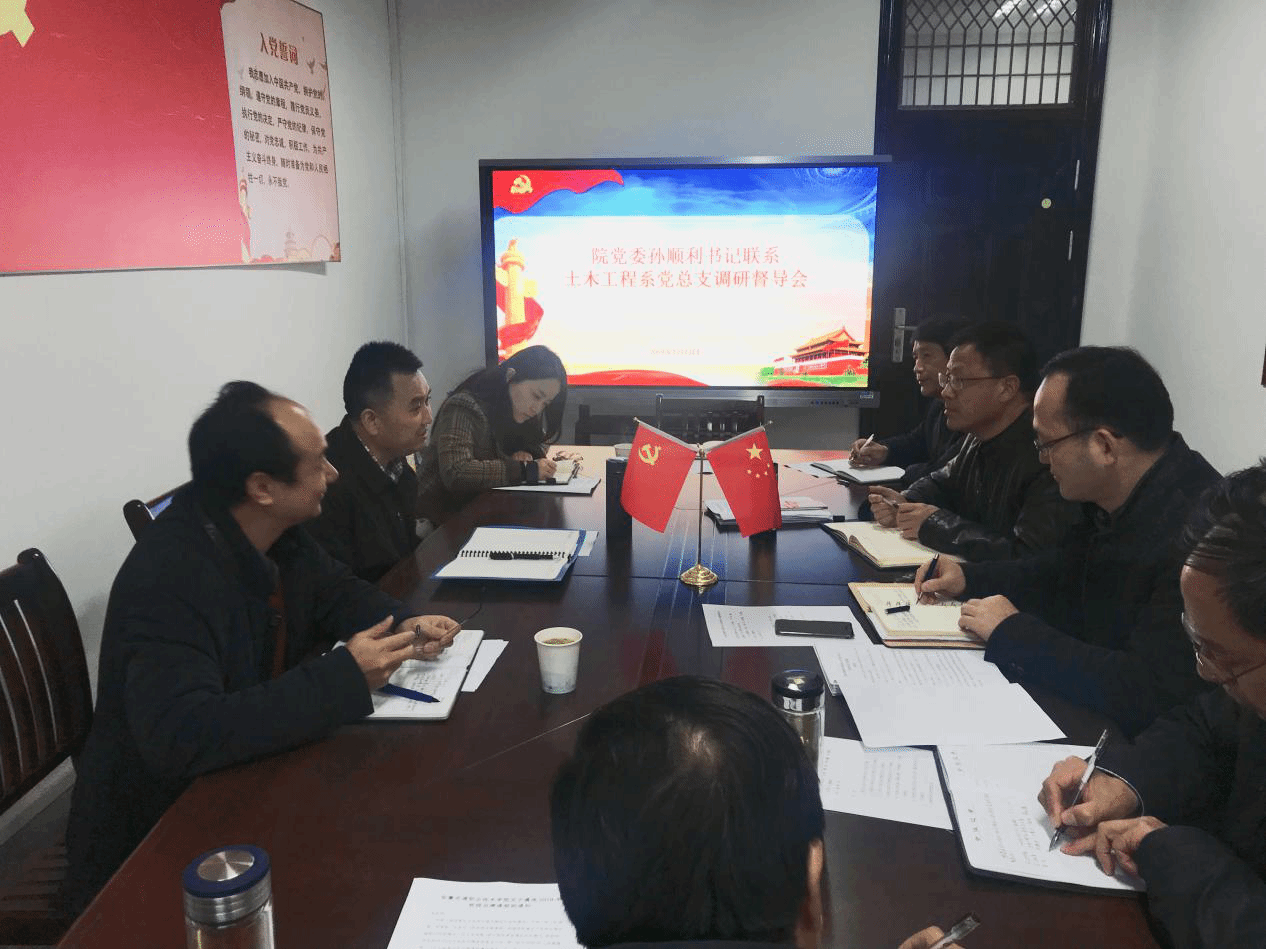 孫順利強調,一是要明確責任。要將黨建主體責任落實到位,不能將黨建與發展脫離開,同時要明確立德樹人是第一要務,在專業建設和課程建設中融入思想政治教育的內容,培養中國特色社會主義接班人。二是要敢于擔當。領導干部要敢于擔當責任,勇于直面矛盾,要與時俱進,順勢而為,在尊重教學規律的基礎上集體決策,以學生為中心,堅持“三全育人”。三是要銳意創新。要創新思維,創新制度,不斷提升教學能力和管理水平,培養德智體美勞全面發展的學生。四是要協同奮進。要不斷加強班子建設,增強班子隊伍的協同性,要學習政策,培養斗志,既要埋頭苦干也要抬頭看路,充分調動土木工程系每一個教職工的積極性。