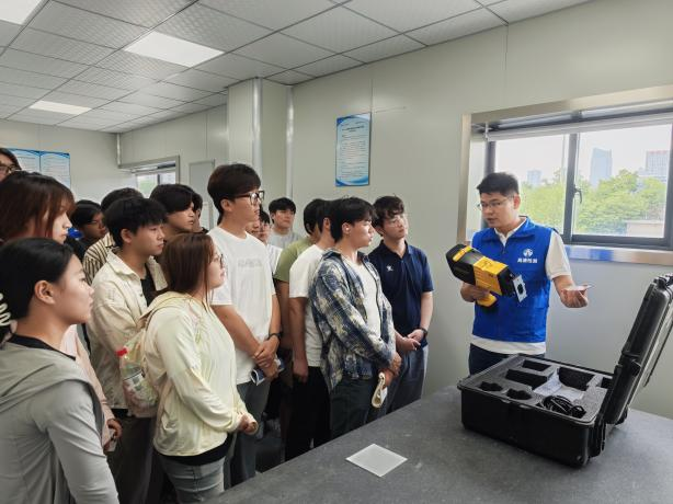 首站抵達安徽高速公路試驗檢測科研中心有限公司,同學們仿佛進入守護道路質量的“科學殿堂”。專業技術人員深入講解高速公路檢測全流程,從路面平整度、壓實度檢測到橋梁結構健康評估,強調其對高速安全運營的關鍵意義。同學們觀摩先進檢測設備實操,積極向技術人員請教檢測原理、數據處理等專業知識,技術骨干耐心答疑并分享實戰經驗。