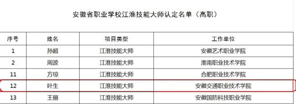 根據《安徽省教育廳關于深化職業教育“三教”改革實施“六百工程”的通知》(皖教秘職成〔2022〕98 號)精神,經學校申報、地市推薦、專家評審,本次評選共確定江淮職教名師 50 名、江淮技能大師 50 名、產業專業合作鏈雙鏈長 50 個、在線專業精品課程 50 門、課程思政型案例 50 個、教學創新典型案例 47 個作為首批“六百工程”項目。