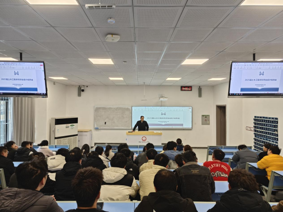 為了更好地組織和指導2025屆土木工程專業聯合培養本科學生完成畢業設計,確保每位學生都能在規定的時間內高質量地完成任務,土木系于2024年12月6日在尚能樓召開了畢業設計動員大會。畢業設計指導教師橋梁組組長肖玉德、道路組組長齊永生、本科教育教學管理辦公室主任孫鵬軒及2025屆土木工程專業全體畢業生參加了本次動員大會。