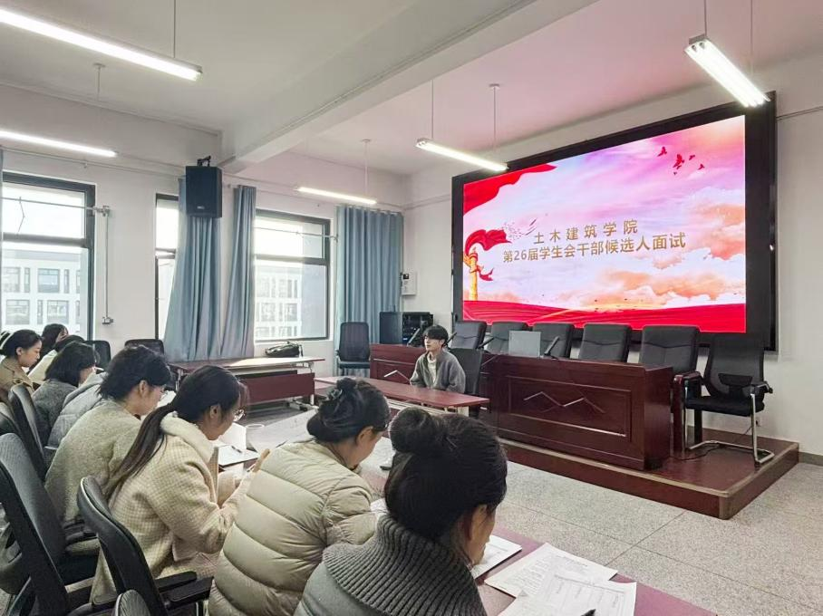 11月26日下午,土木建筑學院2025年學生會干部候選人面試順利舉行。本次面試旨在選拔新一批有能力、有擔當?shù)膶W生會骨干,近30名優(yōu)秀同學參與角逐,評審團由學院團委老師及學管老師共同組成。