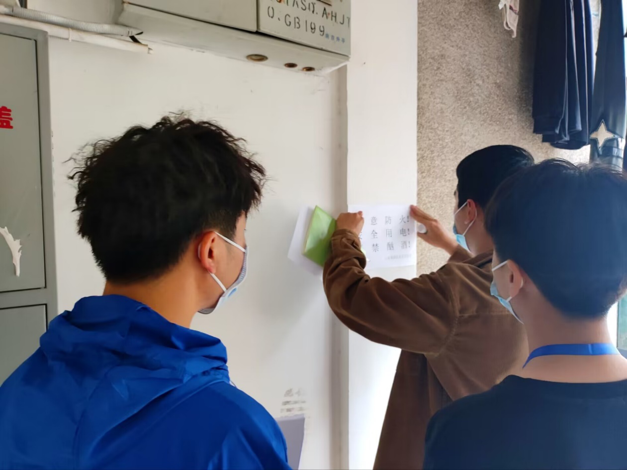 對于個別寢室,針對性地提出尤其注意是否存在使用吹風機、直夾板等大功率電器的情況,切實加強同學(xué)們的安全意識,做好同學(xué)安全保障。