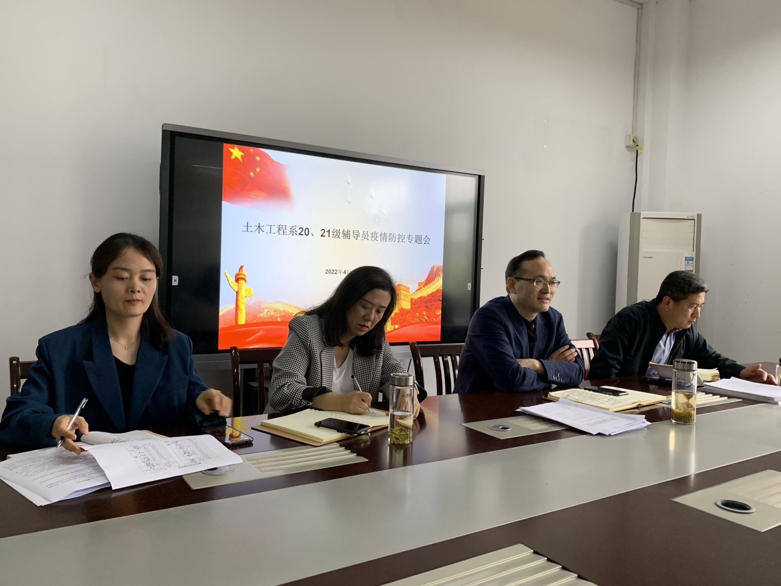 當前疫情形勢嚴峻復雜,疫情防控工作是國家當前重大的政治任務。為嚴格貫徹落實疫情防控期間學院的各項管理規定,做好20、21級在校生的校園防控工作,土木系于4月13日下午4點在系會議室召開20、21級輔導員疫情防控專題會。系領導鄒建華、王東、朱蓉出席,20、21級各位輔導員參加會議。會議由蔣鳳嬌老師主持。