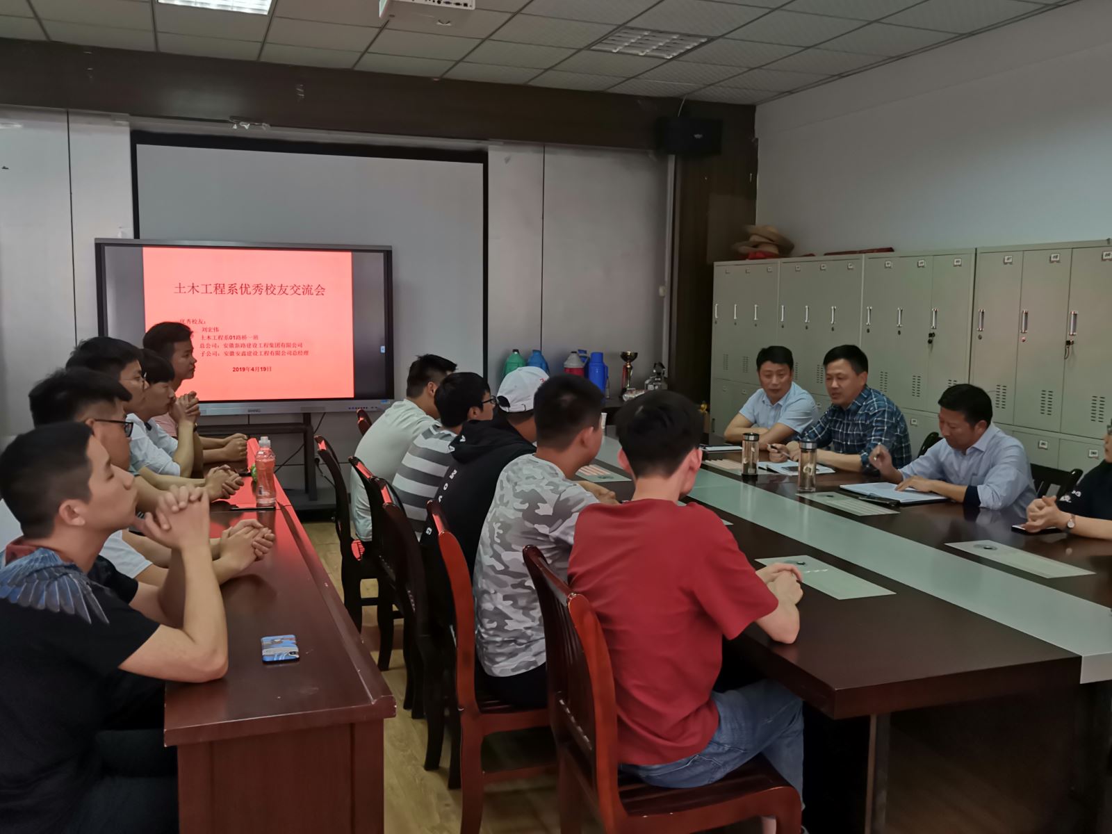 2019年4月19日,我系優(yōu)秀校友、安徽安鑫建設(shè)工程有限公司總經(jīng)理劉宏偉先生來(lái)我系與17級(jí)“新路現(xiàn)代學(xué)徒制”班同學(xué)做了一場(chǎng)別有趣味的交流會(huì),出席交流會(huì)的有土木系主任王常才、土木系校企合作辦公室主任王守勝、土木系王佳賓、李俠老師。王常才主任主持此次交流會(huì)。