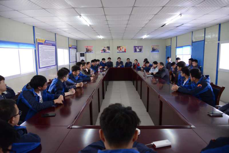 中午前往項目部食堂用餐,讓學生能提前了解未來的工作和生活環境。稍作休息后,集團總工程師宋洪戰、集團人事部長楊維清與老師學生們開展了交流座談會。宋工細心介紹項目施工流程和后期運營規劃,學生們大膽提問,學校老師協調溝通,雙方暢所欲言,氣氛熱烈而溫馨。