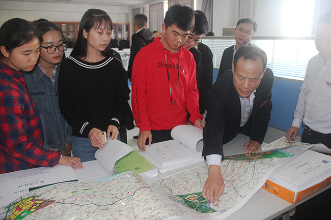 在國順設計咨詢公司,同學們認真聆聽公司領導對工程項目方案的簡介,感受職業(yè)的嚴謹,體驗專業(yè)的魅力。