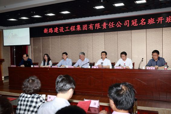 安徽交通職業技術學院張國棟院長,土木工程系王常才主任、鄒建華書記、肖玉德副主任,新路建設集團公司韓恒忠總經理、崔勇副總經理、人力資源部魏靜部長、安鑫公司劉宏偉總經理、綜合科張麗麗科長,以及土木工程系部分師生一同參加了冠名班開班儀式。