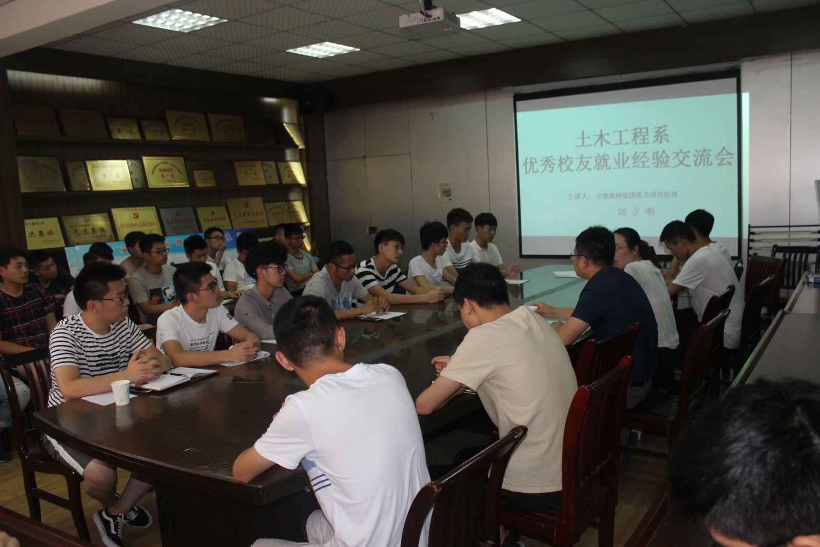 為促進我系學生就業工作,提高畢業生就業技能,進一步增加大家對未來工作崗位的了解,2017年6月23號下午3點,我系邀請了08屆我系優秀畢業生、安徽路橋集團優秀項目經理劉立明先生在系會議室舉辦了就業經驗交流會。我系各班均派學生代表參加了本次座談會。交流會由我系就業指導教師何基榮主持。