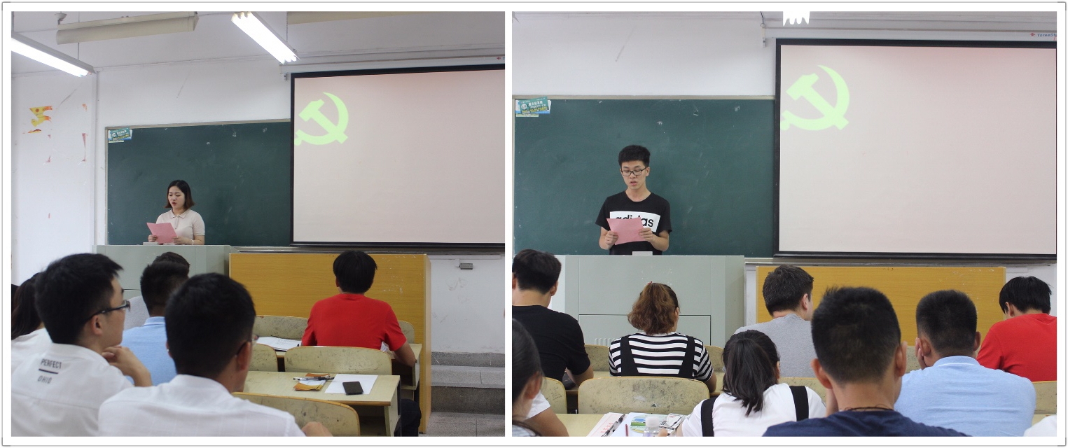 隨后,由畢業生黨員14101班的裴佳佳同學宣讀2017屆黨員文明離校倡議書,要求各黨員繼續做到“堅持遵守校紀校規、樹立文明形象;銘記師恩、珍視友情;提高防范意識、加強安全防范;調整心態,迎接挑戰;身體力行,發揚黨風。”站好離校的最后一班崗。接著,由14192的浦俊同學代表畢業生黨員發言,我們應切實記住“全心全意為人民服務”的宗旨,它不僅是一種榮譽,更是一種責任,我們要在學生中起模范帶頭作用。回顧以往的點點滴滴,這些閃光的日子,必將成為我們永遠的記憶,珍藏心中。往后的日子里,我們無論在哪里,我們都會好好努力,不負母校、老師的期望。