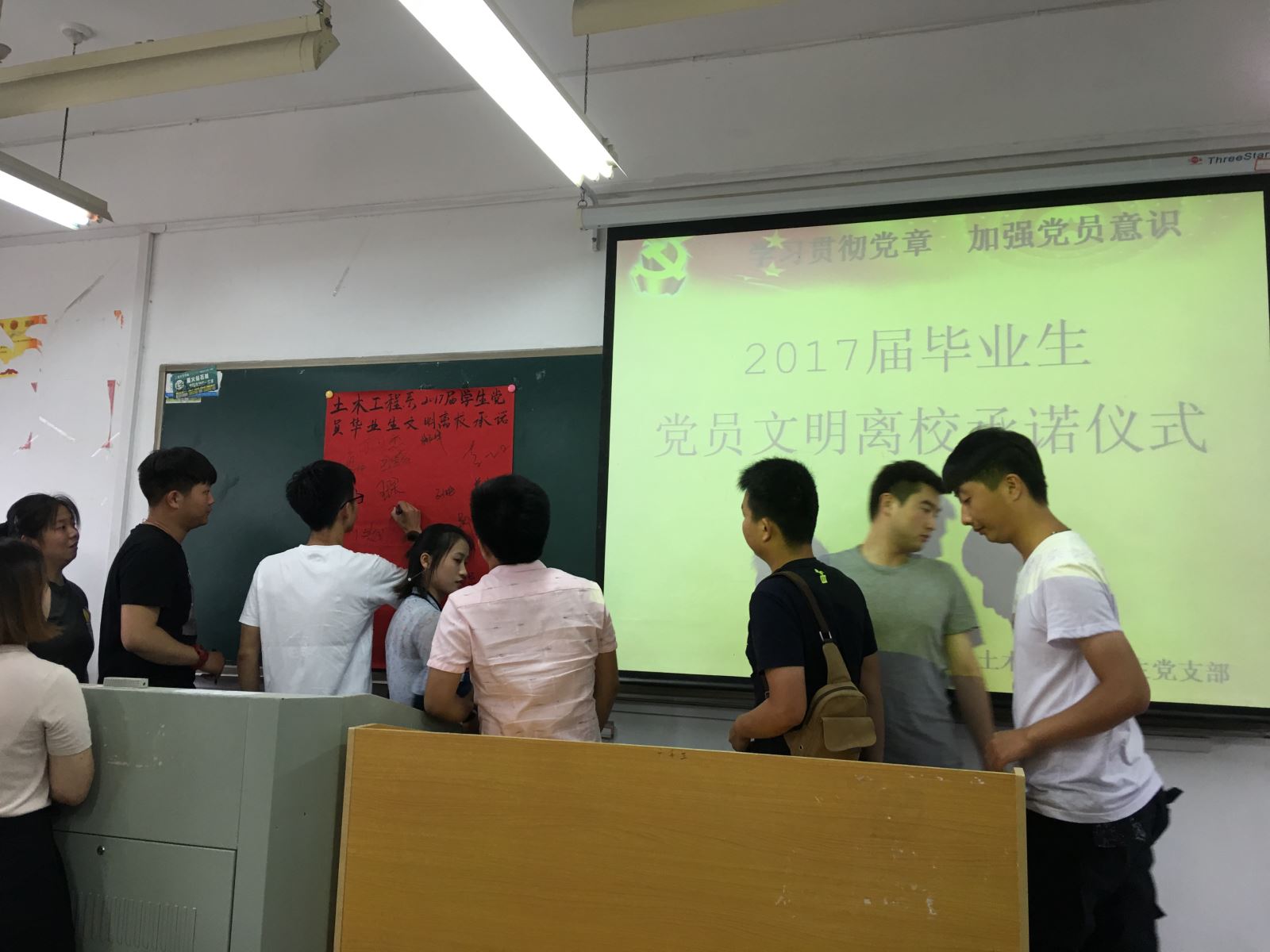 最后,全體畢業生黨員有秩序地在“文明離校承諾書”上鄭重簽字,此次活動圓滿結束。