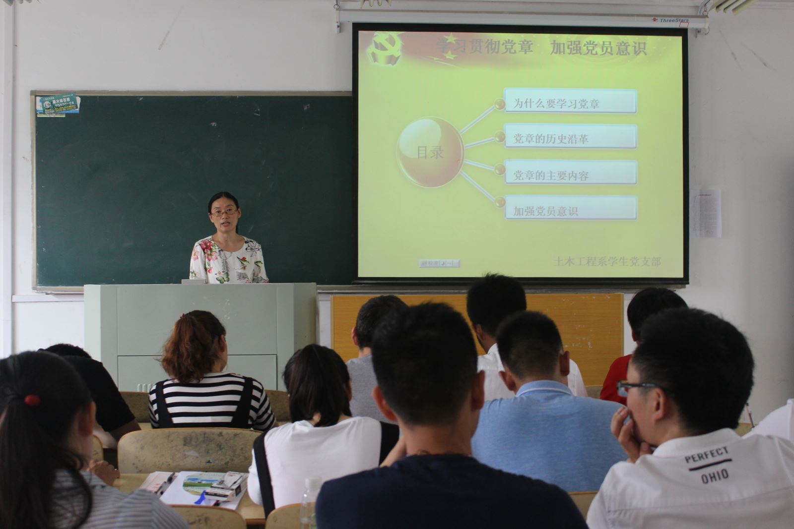 為了推進“兩學一做”學習教育常態化制度化和基層黨組織標準化建設,結合我系畢業生文明離校工作,土木工程系學生黨支部6月30日上午在318教室開展以文明離校為主題的黨課、重溫了入黨誓詞、文明離校倡議及文明離校承諾儀式等系列活動。此次活動有學生黨支部書記汪愛娥老師、負責學生活動張靜老師及全體黨員參加。