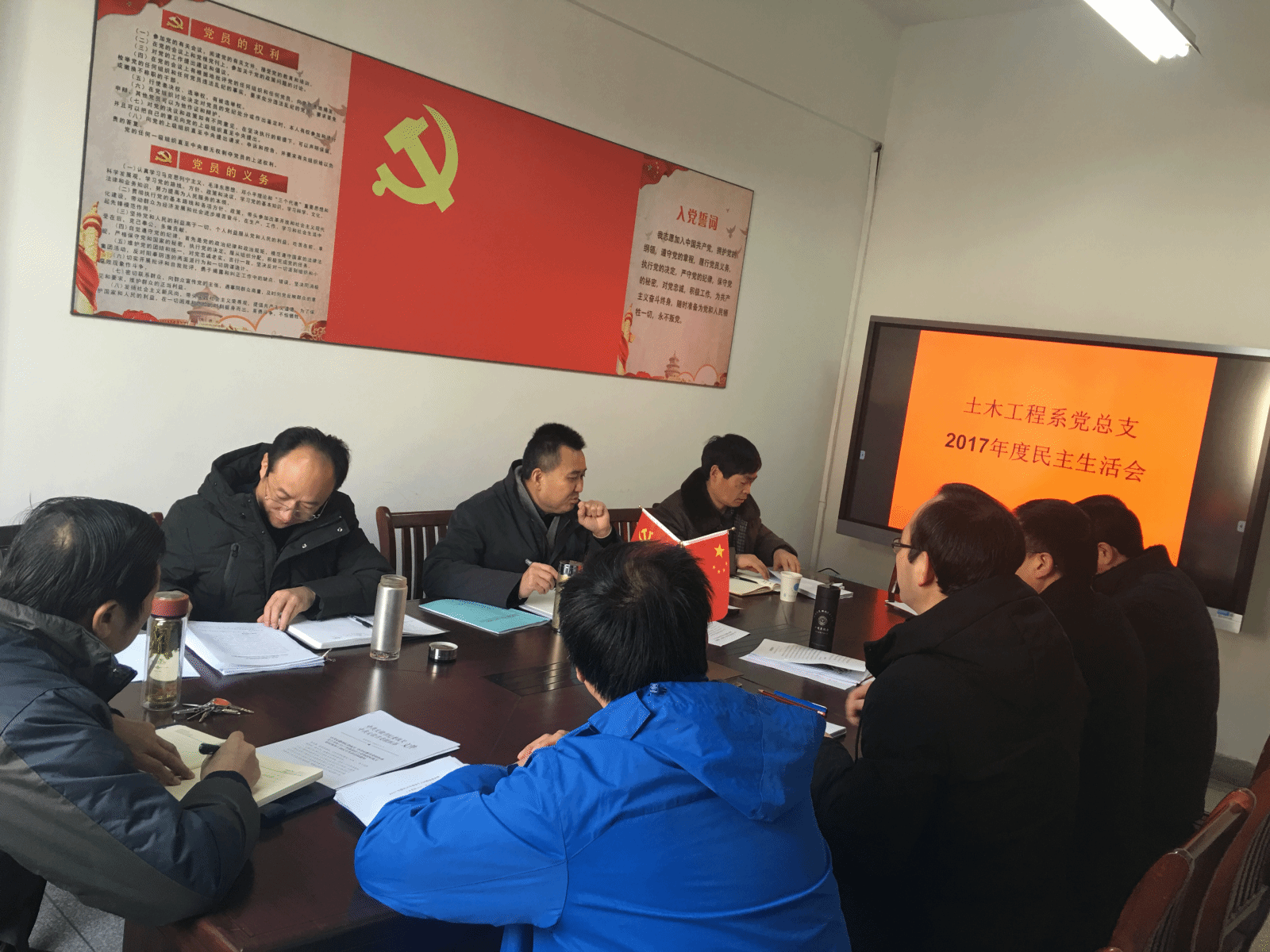根據院黨委統一部署,2月2日上午,土木工程系黨總支在黨員活動室召開2017年度黨員領導干部民主生活會。院黨委書記孫順利在院組織人事處處長楊先奇、教務處處長吳玉陪同下親臨指導,會議由系黨總支書記鄒建華主持,系領導班子全體成員參加了會議。