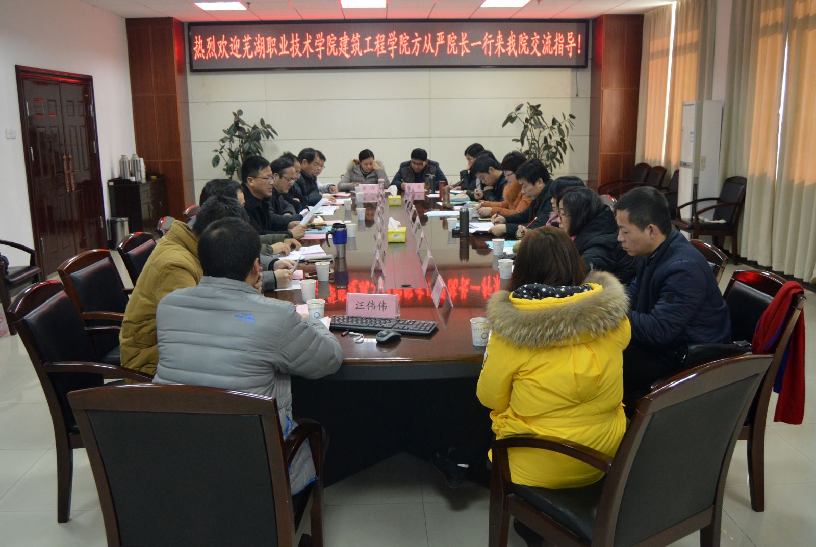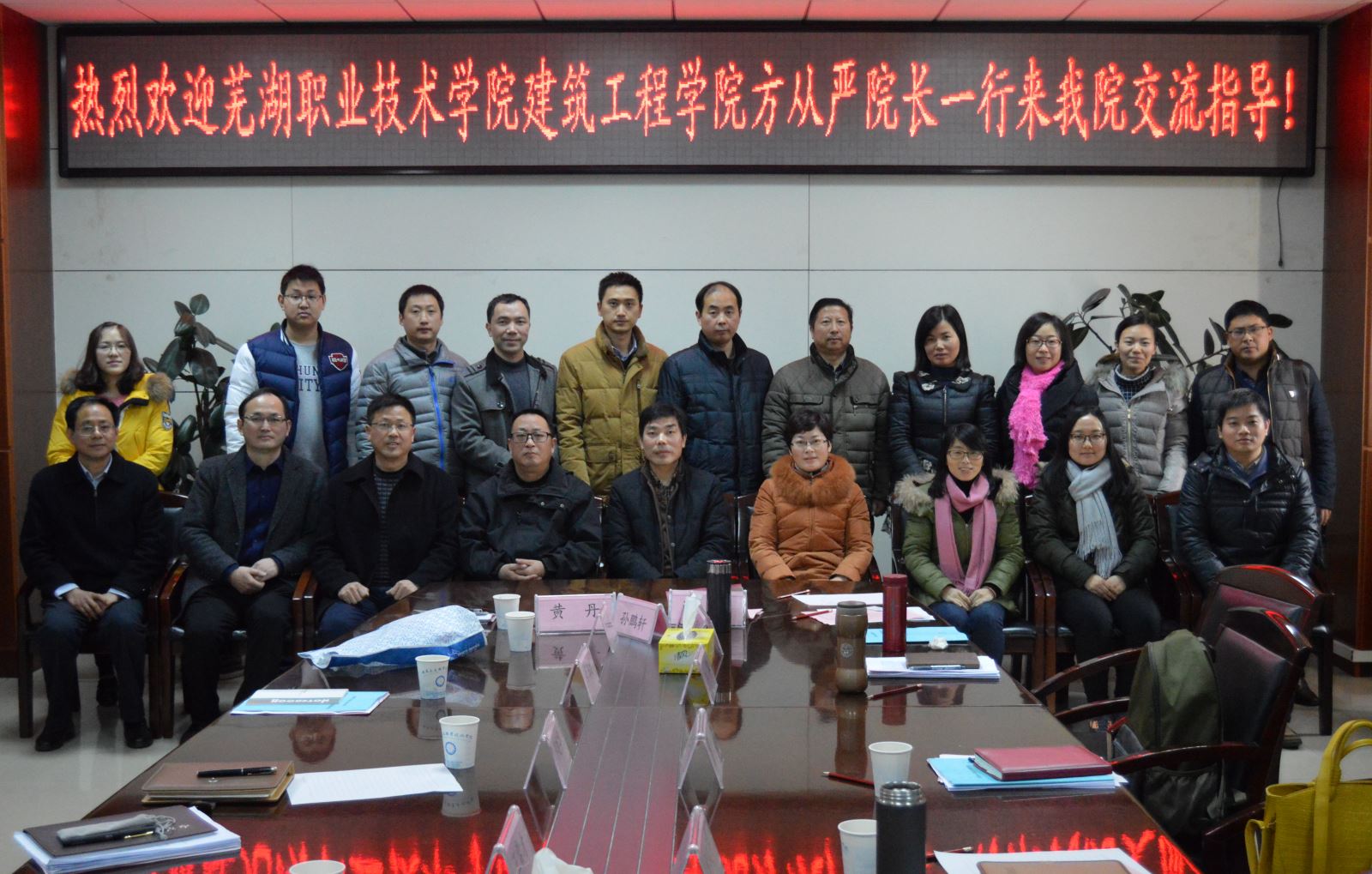 12月29日上午,蕪湖職業技術學院建筑工程學院院長方從嚴等一行十人來院學習交流。院領導李亮副院長、土木系主任王常才、系書記鄒建華等人接待了來訪客人。
