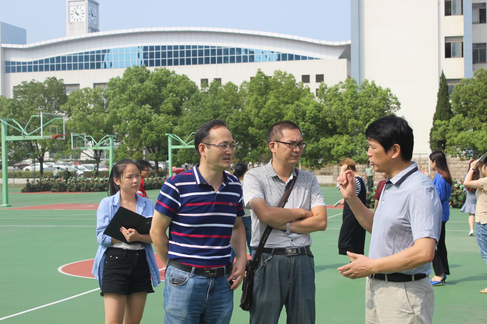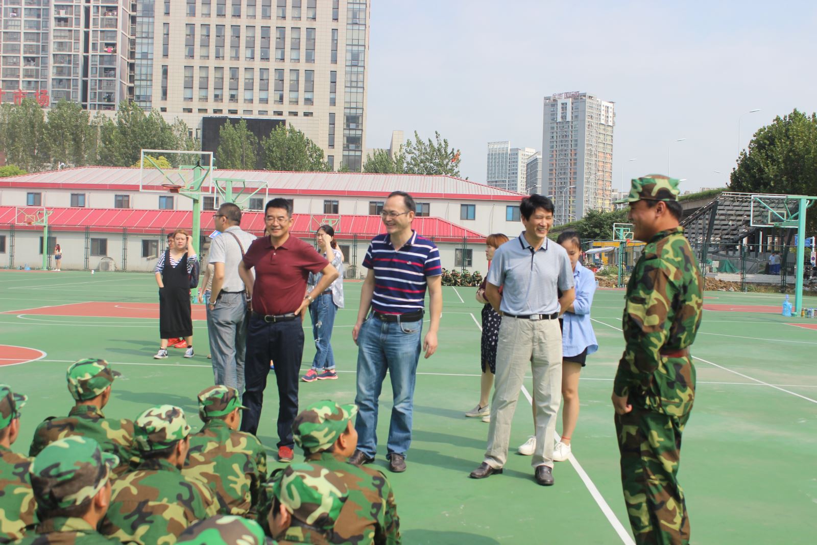 9月19日上午,系黨總支書記鄒建華老師、系黨總支副書記陶權(quán)老師以及新生班輔導(dǎo)員慰問(wèn)了正在參訓(xùn)的新生,并與承訓(xùn)教官和參訓(xùn)學(xué)生進(jìn)行了親切交流。學(xué)生們?cè)诮坦俚目诹钕乱燥枬M的精神問(wèn)好,嘹亮的口號(hào)聲響徹整個(gè)訓(xùn)練場(chǎng)。鄒建華書記一行關(guān)切詢問(wèn)了大家的身體狀況,叮囑他們多喝水,多注意休息,還有最重要的就是堅(jiān)持。