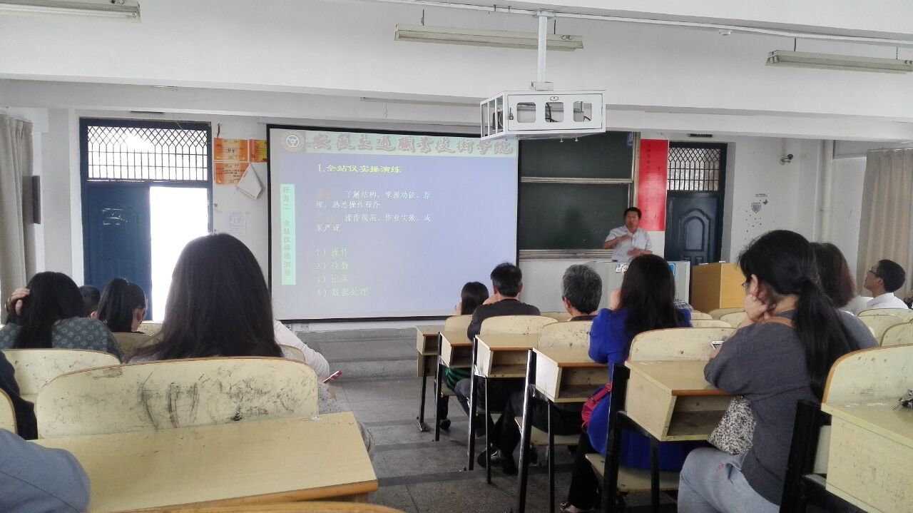 王守勝老師就“全站儀導線測量方法”,結合我院校外實習基地——六安獨山全天候實習基地帶隊實習實踐,強調書本理論、動手實踐與生活適應能力等方面的結合;嚴任苗就環巢湖四座大橋巡檢,講授了橋梁巡檢的流程及注意事項,強調工程項目管理各方的協調一致。兩位老師將理論實務相結合,輔之于多媒體,清晰講授了相關知識點。