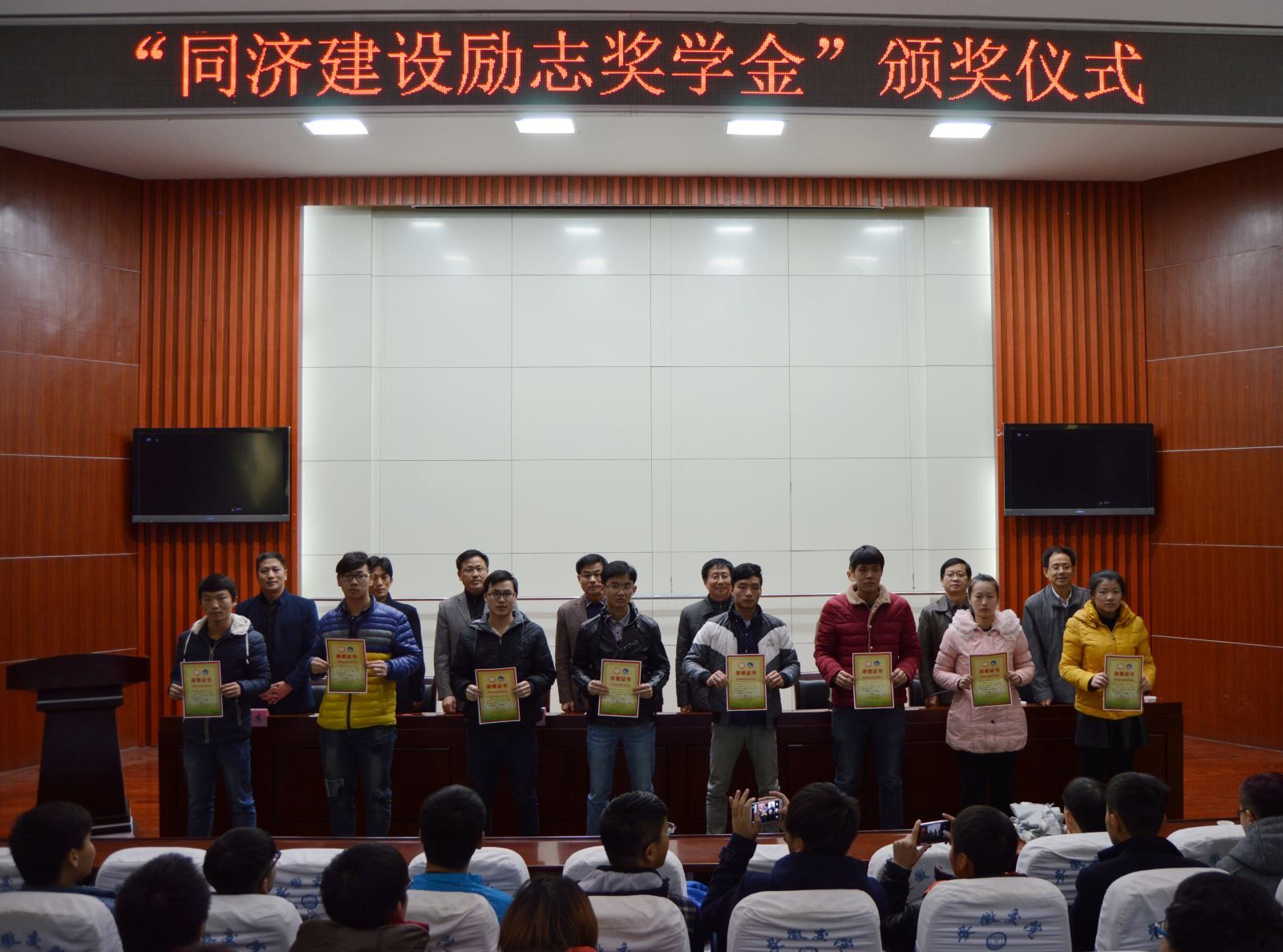 11月24日下午,土木工程系“同濟建設勵志獎學金”頒獎儀式在北區多功能報告廳舉行,副院長王豐勝、同濟建設集團副總經理張登堂等共同出席。