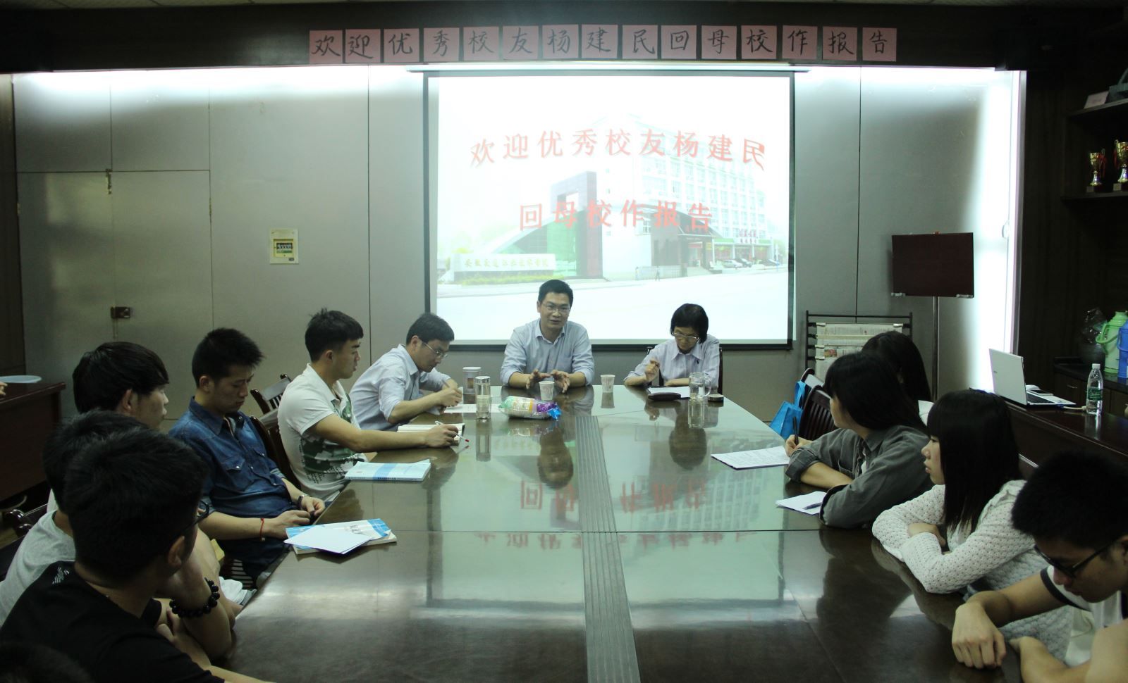 5月7日晚七點,土木工程系06屆校友,安徽省路橋公司望江路改造01標項目經理楊建民應邀回到闊別已久的母校,在北教三樓會議室為學弟學妹作專題報告。