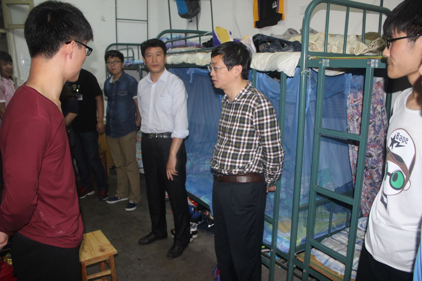 為了了解學生們的宿舍問題和加強同學們的宿舍安全意識,2015年5月13日晚,土木系黨總支朱文勝書記和總支副書記陶權(quán)老師的帶領(lǐng)系學生會主要學生干部對男生宿舍進行宿舍安全檢查。