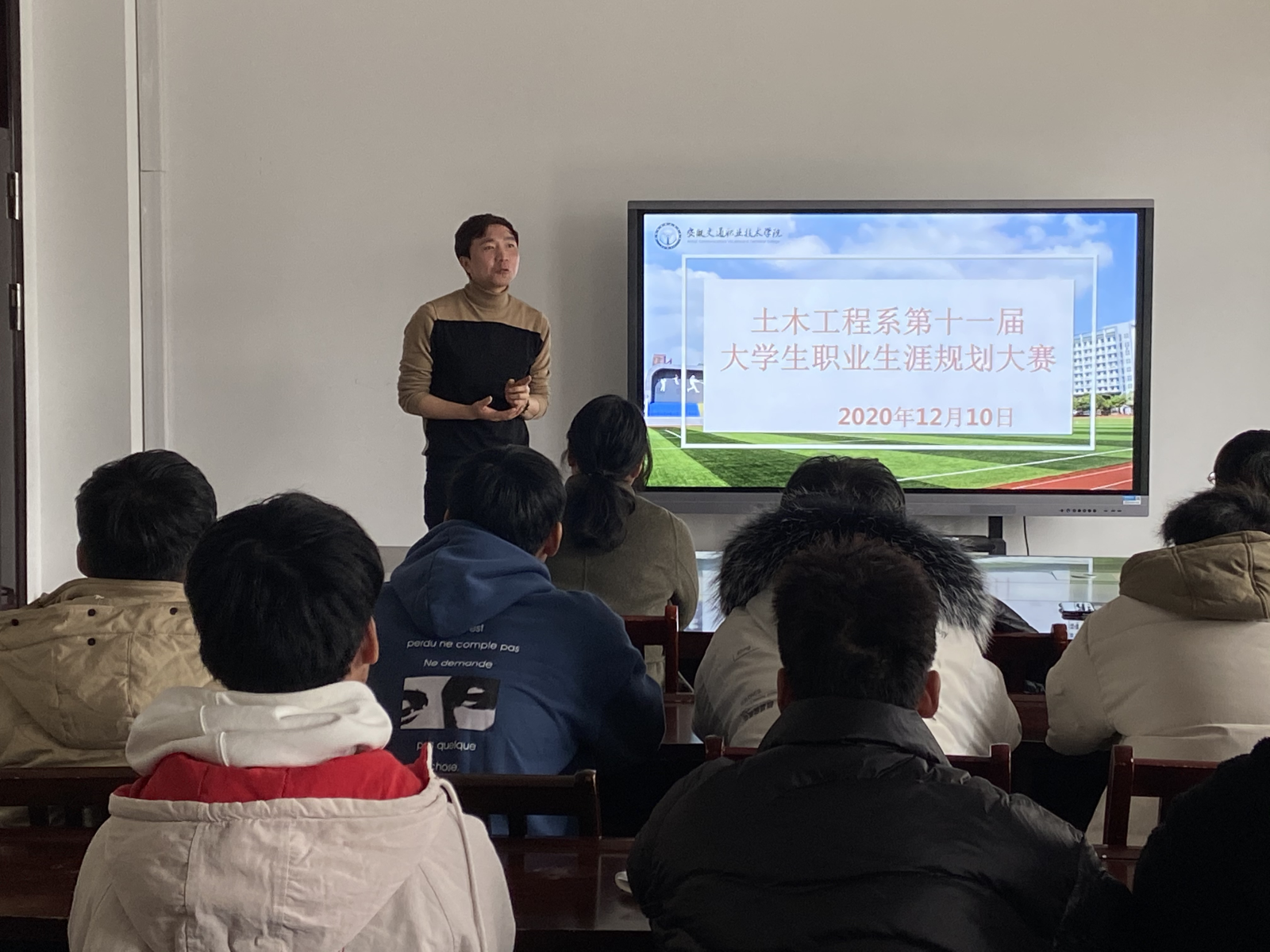 2020年12月10日中午十二點,由土木系團總支學生會學習部舉辦的土木系第十一屆大學生職業(yè)規(guī)劃大賽在土木工程系會議室順利進行。