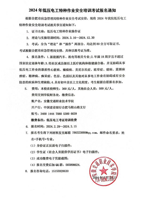 2024年低壓電工安全培訓(xùn)考試報(bào)名通知