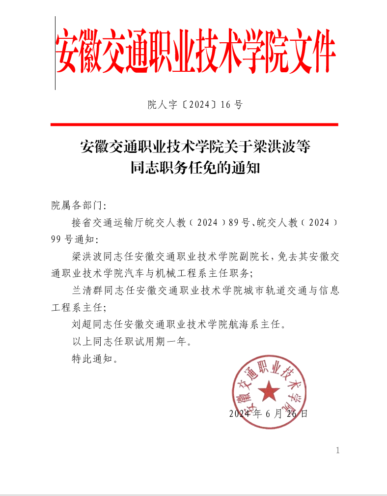 安徽交通職業技術學院關于梁洪波等同志職務任免的通知
